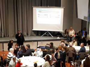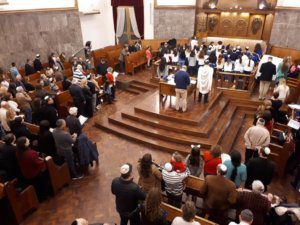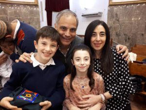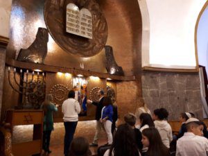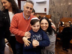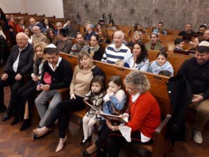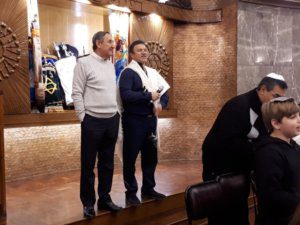 La actividad, organizada por el Centro Unión Israelita y Macabi Noar, comenzó con el tradicional servicio de Arvit, conducido en el Templo Beit Israel por nuestros rabinos Marcelo Polakoff y Gabriel Pristzker, junto a la Jazanit de la Kehilá, Jéssica Alterman. Las oraciones del servicio se intercalaron con diferentes momentos, que involucraron principalmente a los alumnos de cuarto grado de la Escuela Israelita Gral. San Martín. El Presidente del Centro Unión Israelita, Cdor. Hugo Waitman, junto a Manuel Pobirsky en representación del Consejo Escolar, sacaron una Torá del Arón Hakodesh durante un gran segmento musical que unió a todos los niños con sus padres, acompañados en guitarra por el rab Gabi. Luego, el moré Guily Seiferheld dirigió unas cálidas palabras a los estudiantes, anticipando lo que sería el gran momento de la noche.