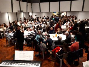 Más tarde, finalmente llegó la hora del tradicional tikún de Shavuot, esta vez, transformado en un juego apasionante para toda la familia. Con la conducción de Federico Tolchinsky, llegó «¿Quién quiere ser «milenario»? El salón principal de «Aleph, Espacio Cultural» albergó a los invitados en mesas dispuestas con comida y bebidas, música de TV Show, y muchas preguntas y respuestas para aprender y dar lugar al entretenimiento familiar. Chicos y grandes participaron, mientras el ensamble vocal Rishrush musicalizó la velada con versiones exquisitas y propias de grandes melodías, bajo la dirección del maestro Gabriel Bendersky.